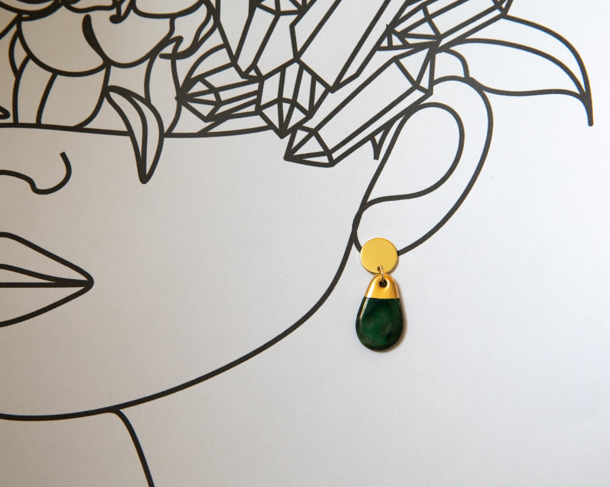 Porcelain and Gold Green Teardrop Drop Earrings