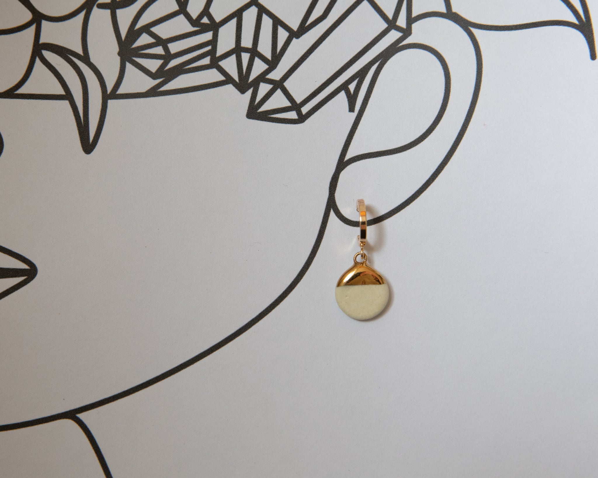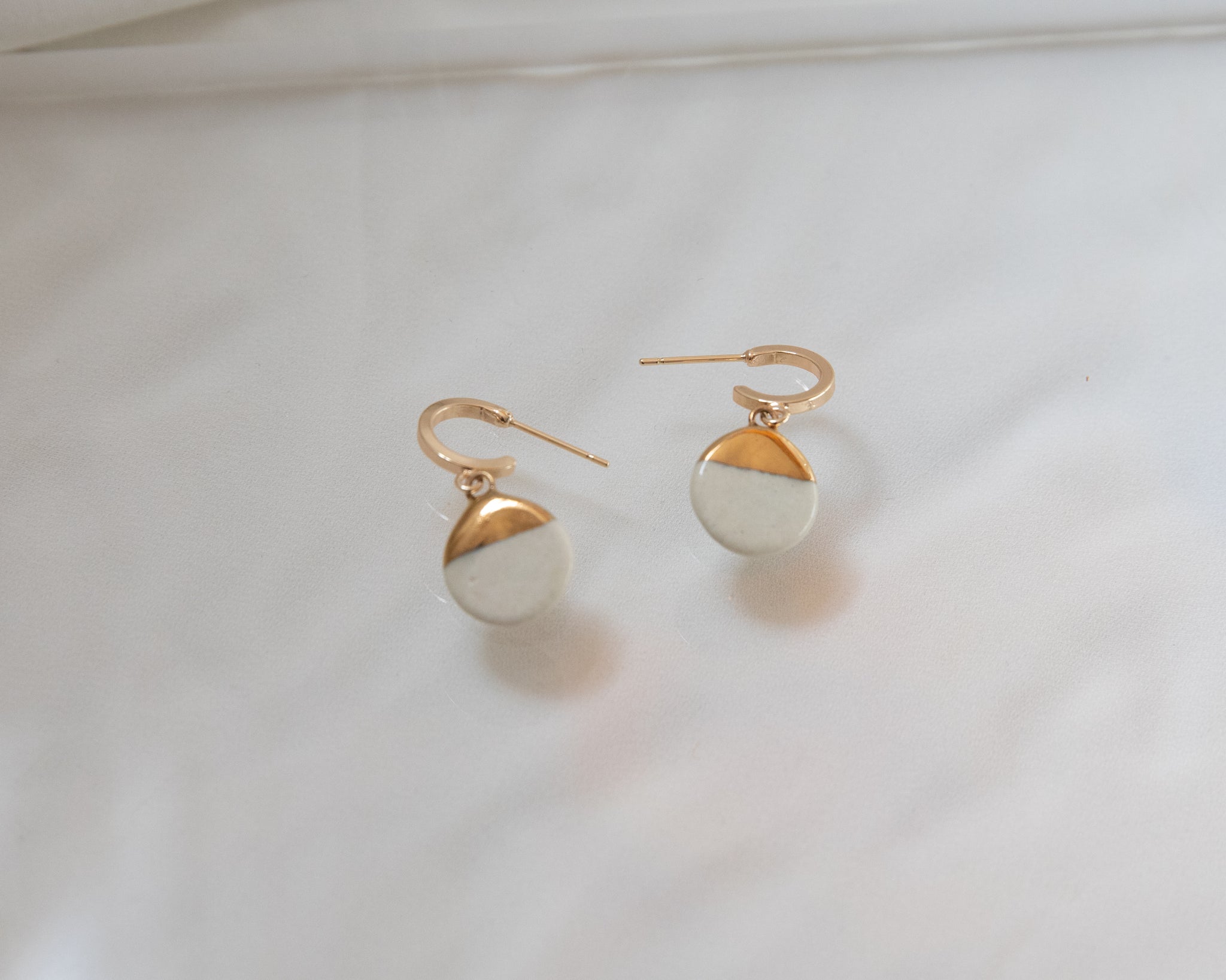 Beautiful porcelain earrings with 22k gold accent. These one of a kind ceramic earrings are extremely lightweight and comfortable to wear. Attached to 14k gold plated huggie hoops.