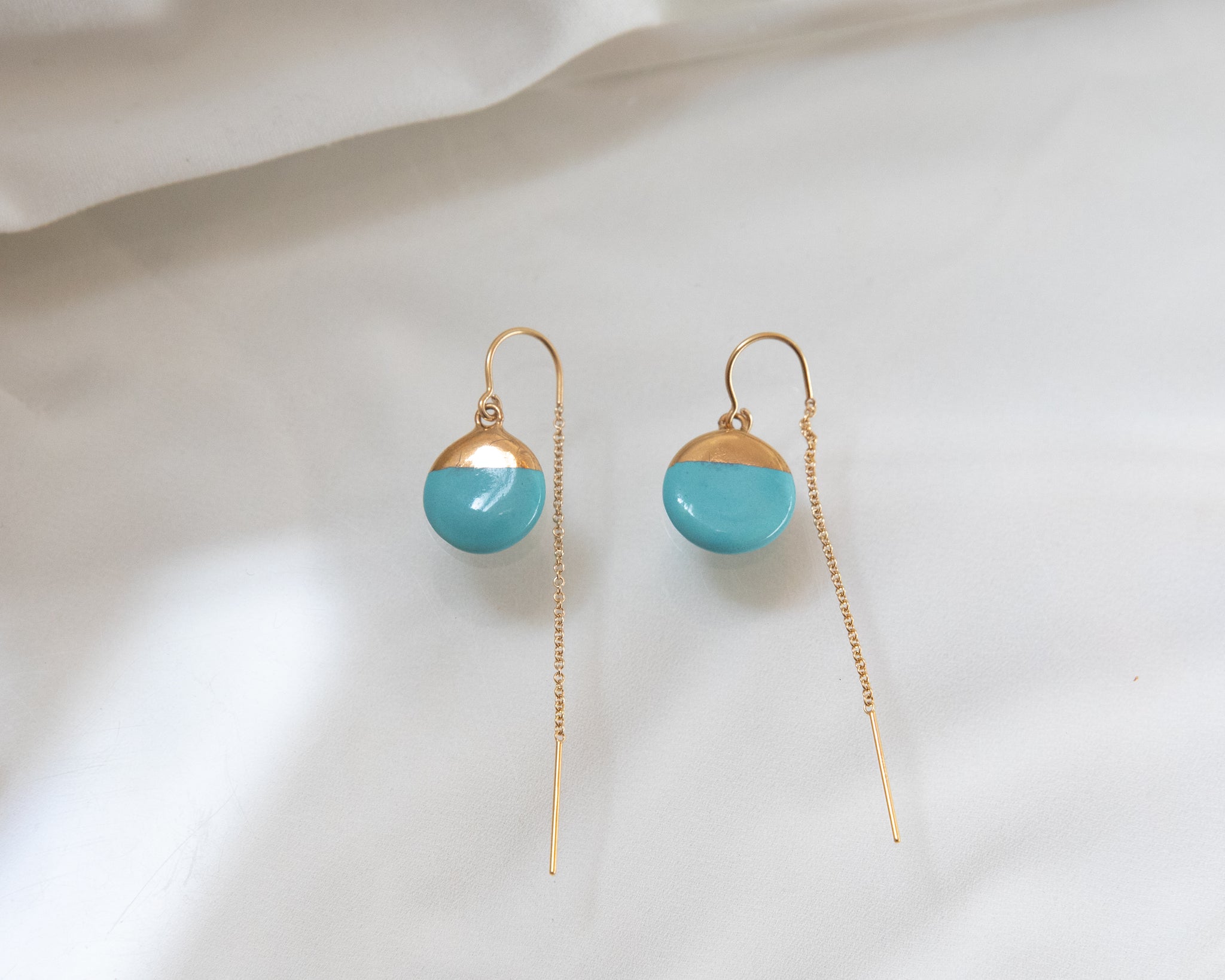 Beautiful porcelain earrings with 22k gold accent. These one of a kind ceramic earrings are extremely lightweight and comfortable to wear. Attached to 14k gold-filled threaders.