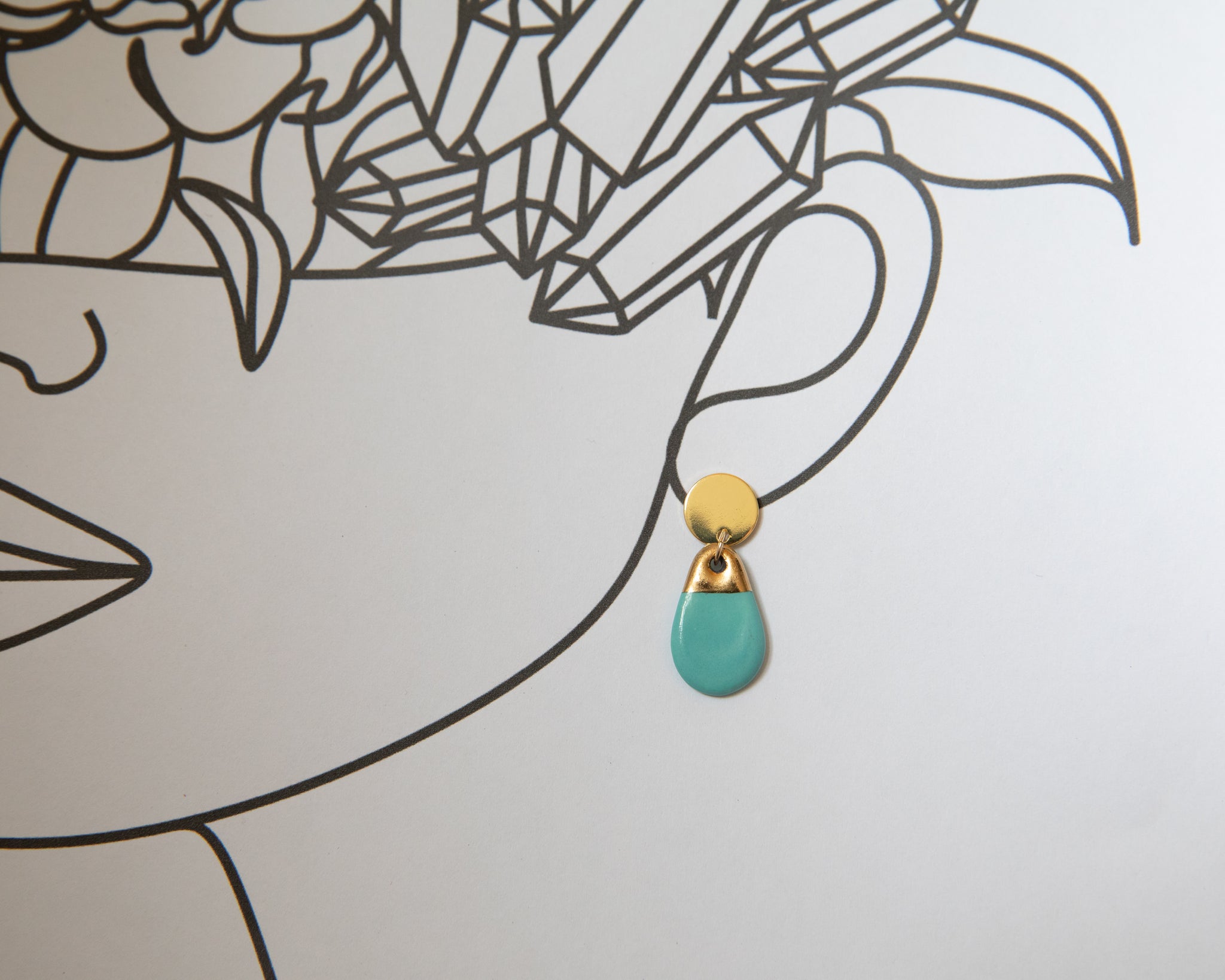 Porcelain and Gold Turquoise Teardrop Drop Earrings