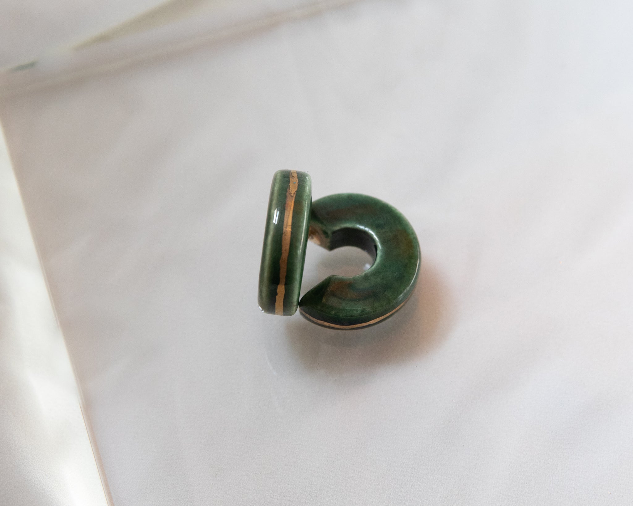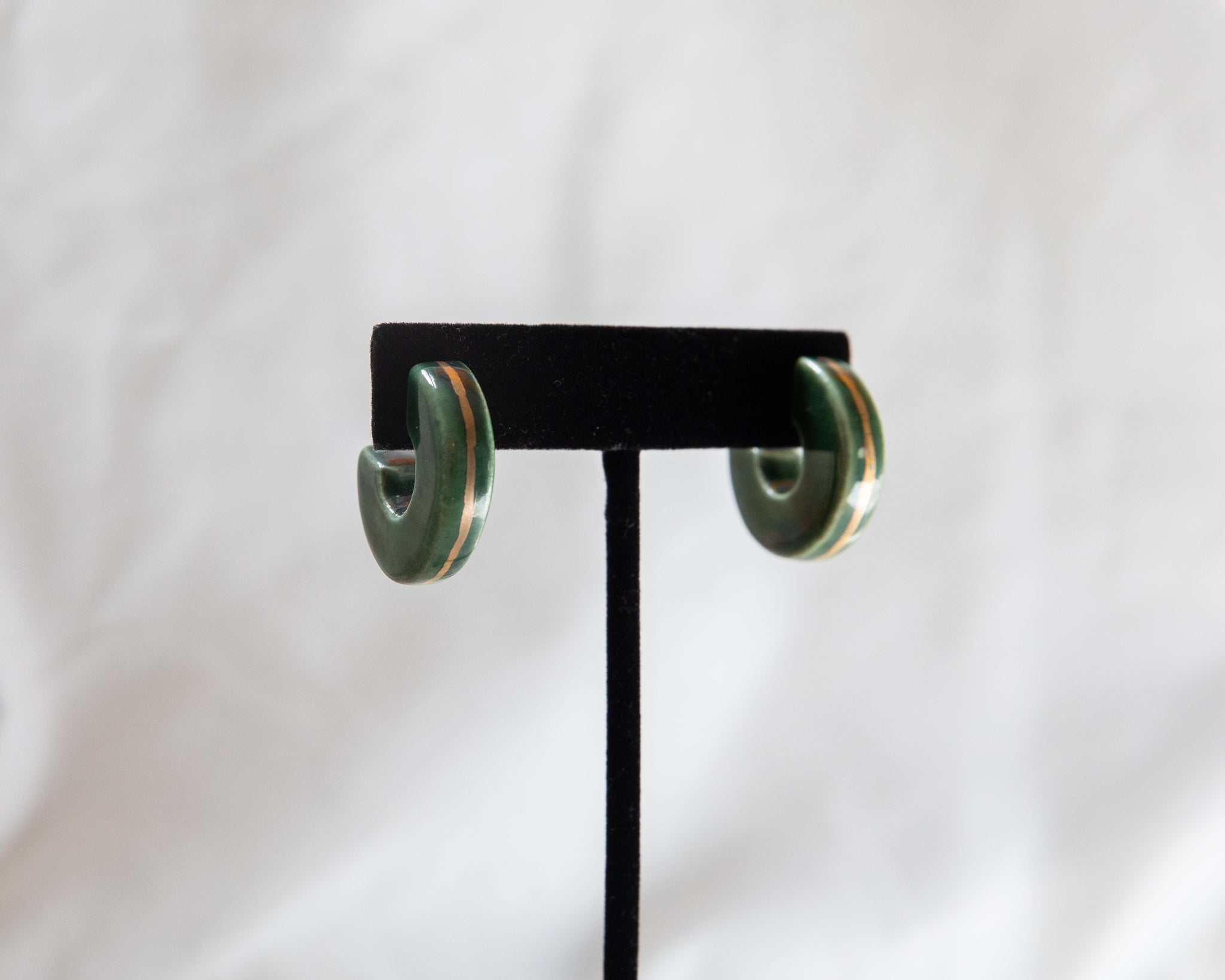 Porcelain, Gold and Green 3/4 Hoop Earrings