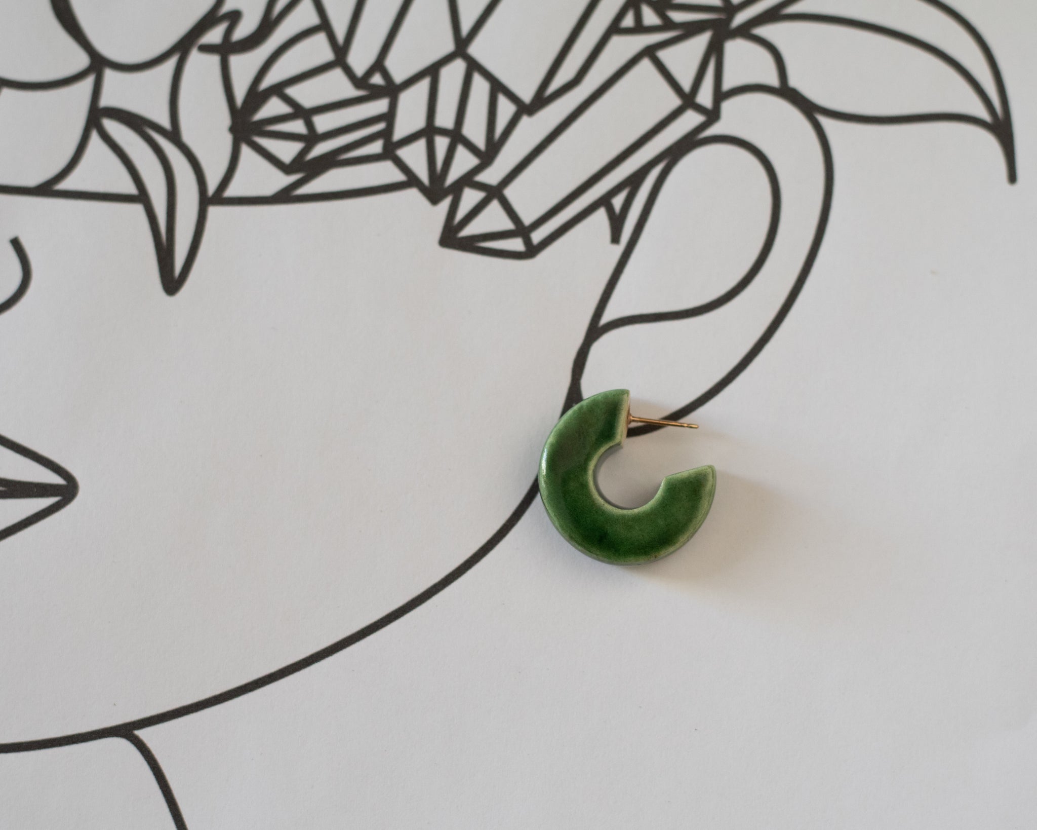 Stylish and lightweight 3/4 hoop porcelain earrings. 22k gold luster detail is hand painted onto each piece.