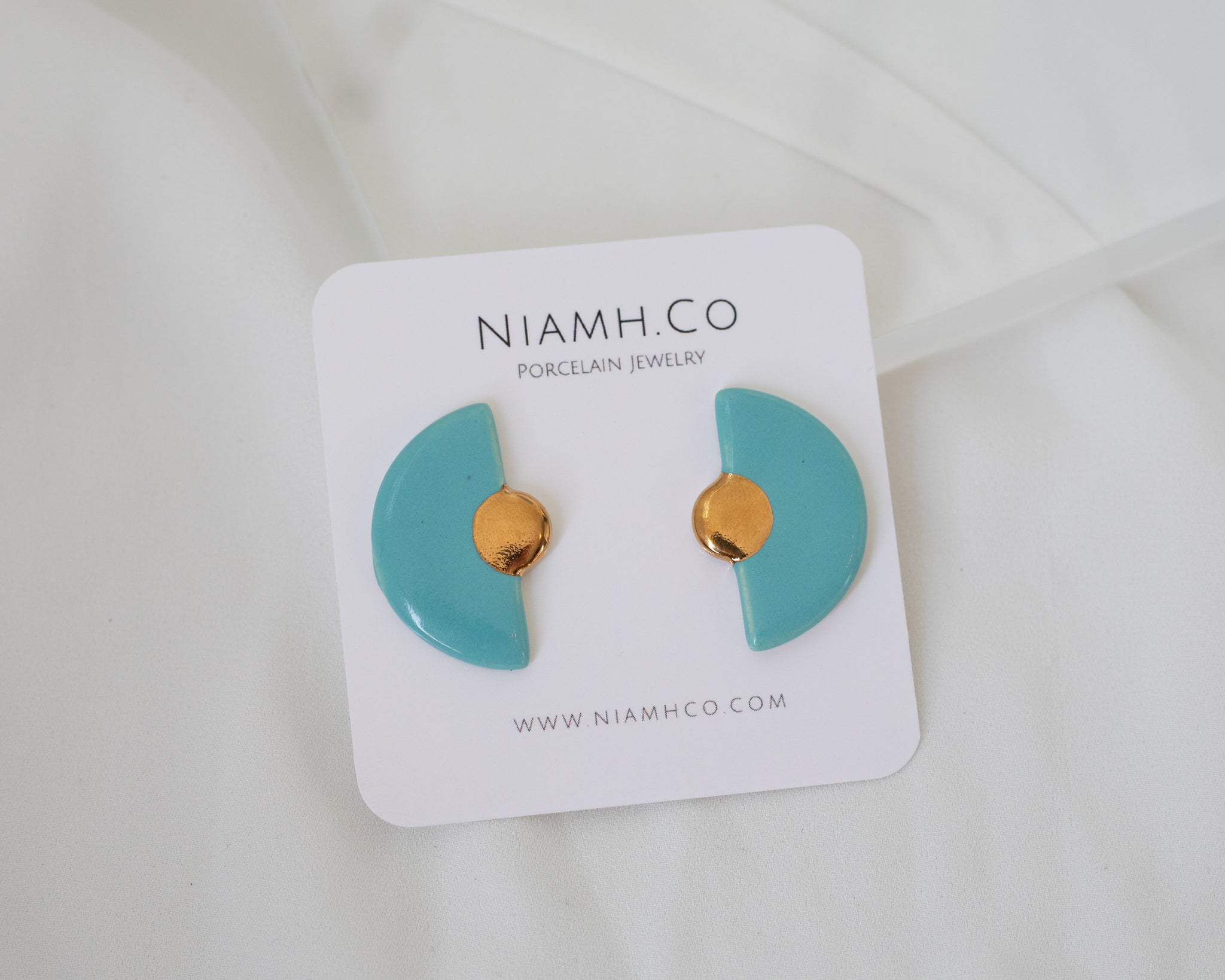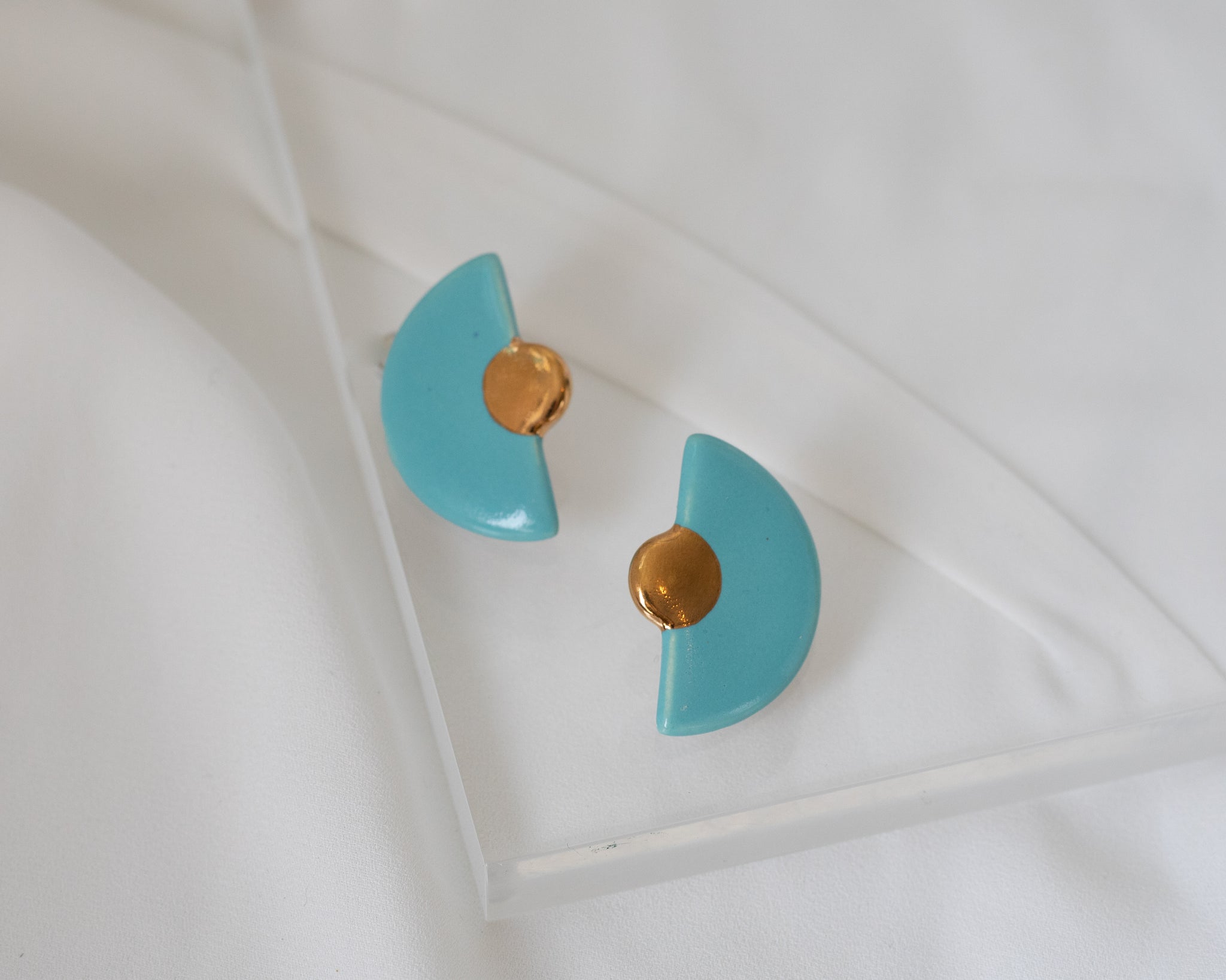 Porcelain stud earring with 22k gold luster detail. Attached to 14k gold filled posts.