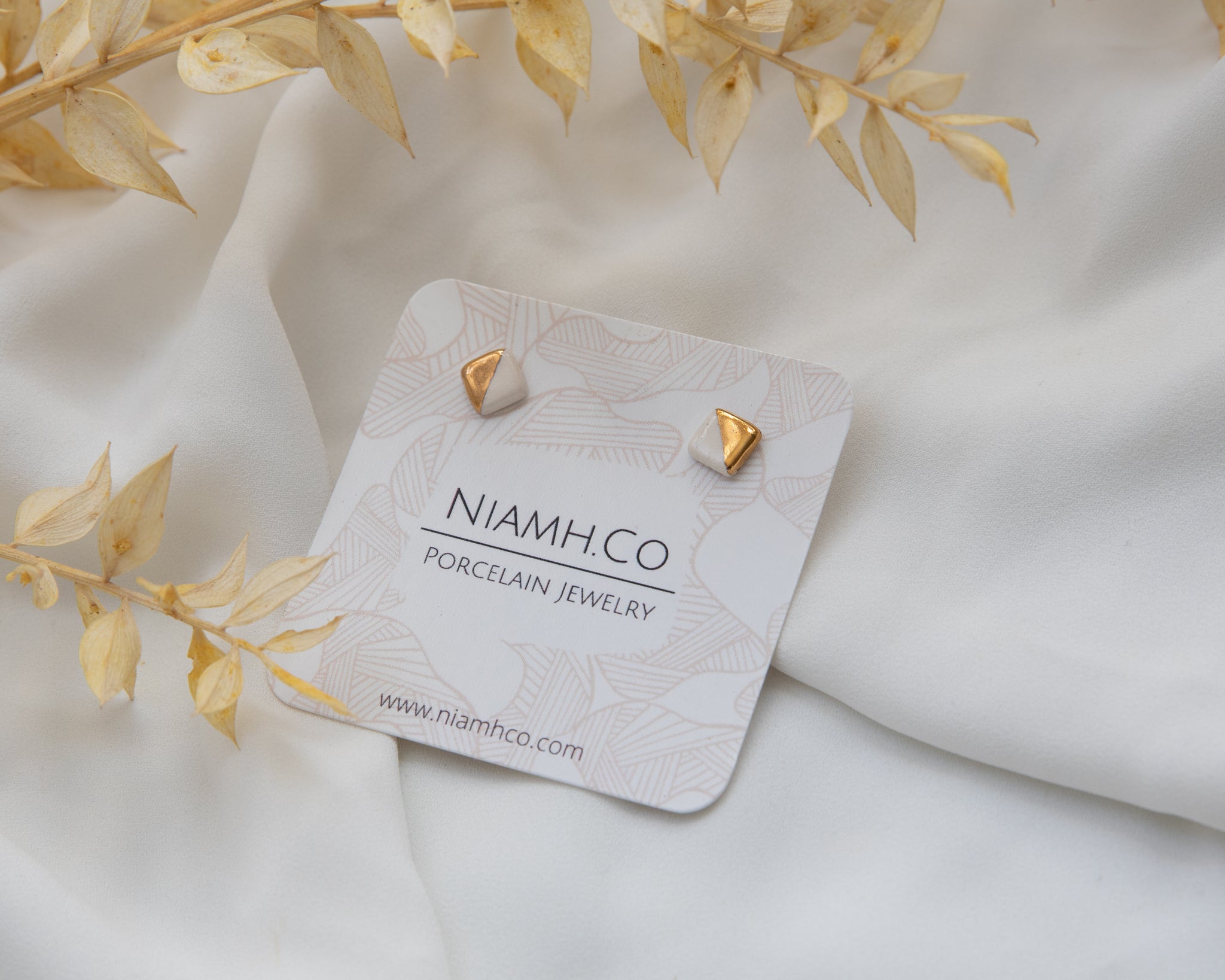 Porcelain and Gold White Mini Square Studs