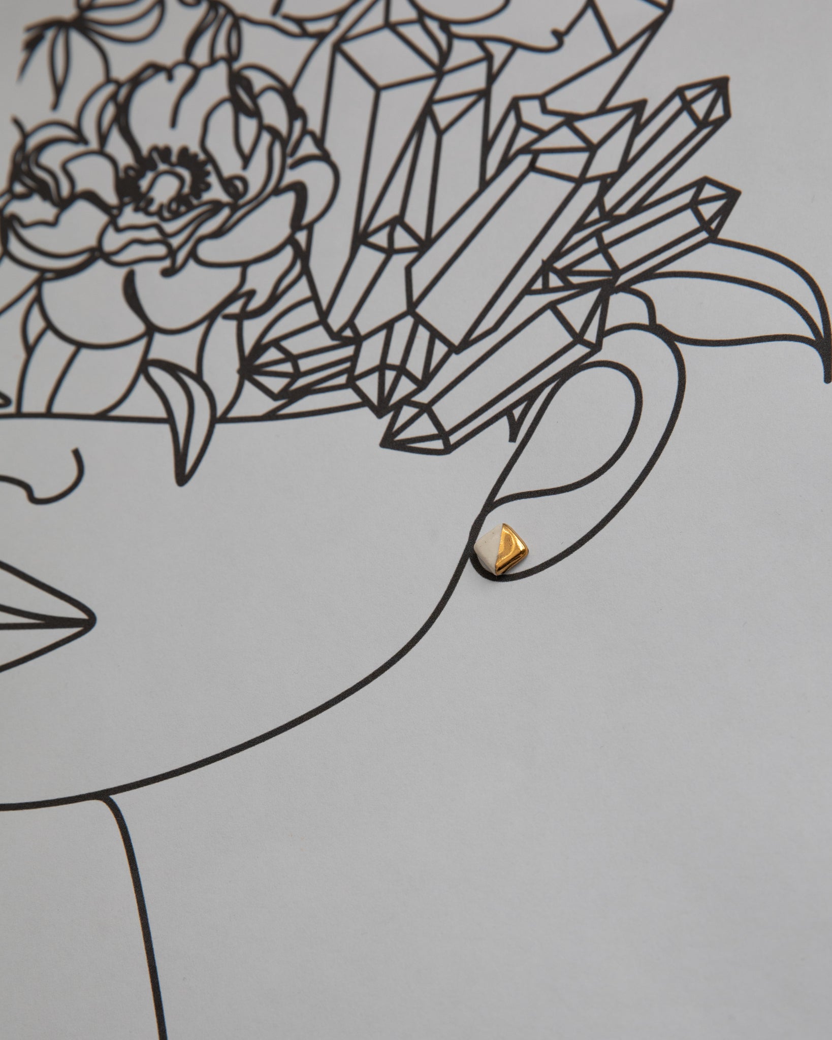 Porcelain stud earring with 22k gold luster detail.